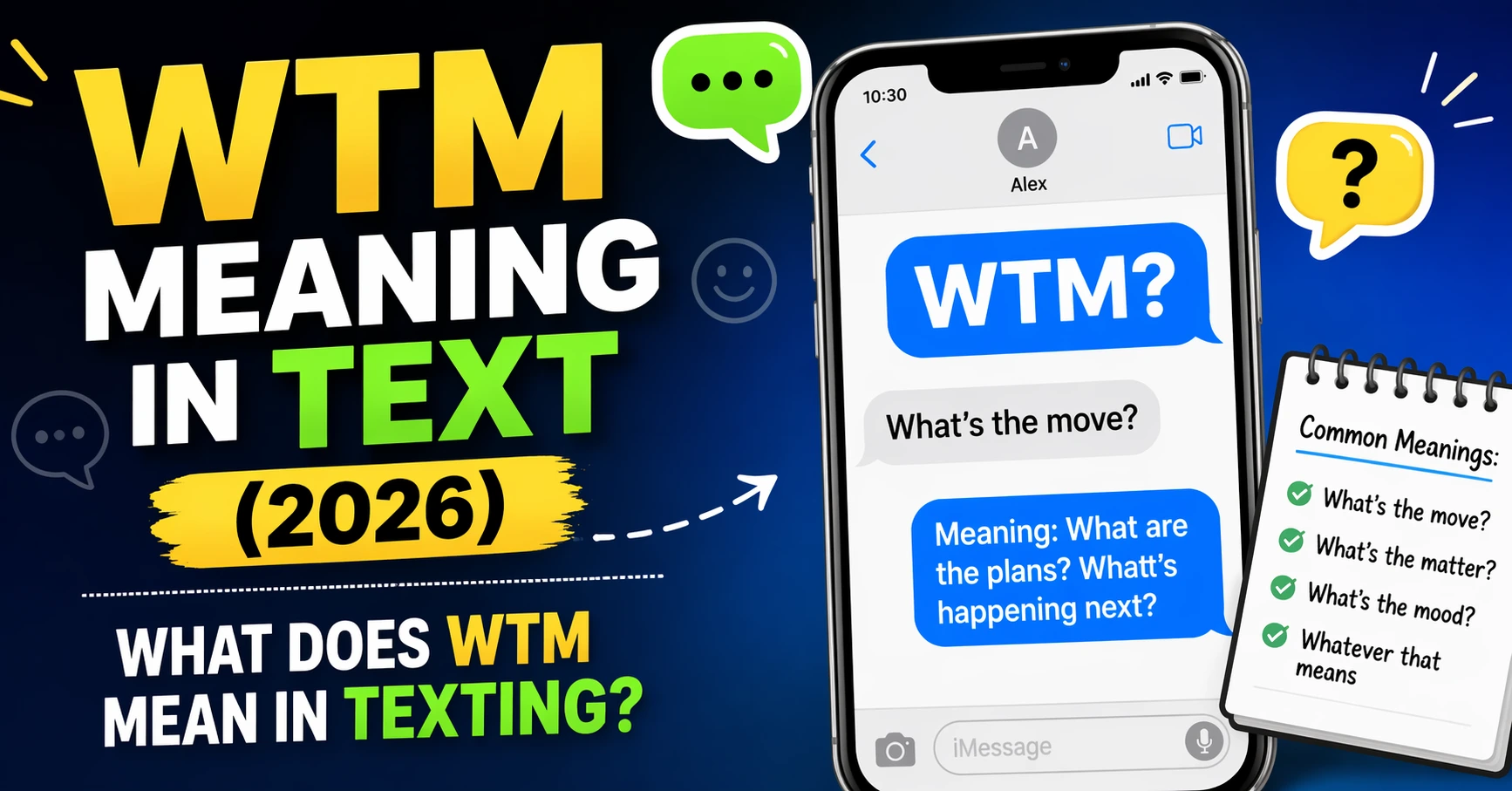 Most of the time, WTM means “What’s the move?” It is a quick way to ask about plans, hangouts, or what is happening next. Sometimes it can also mean “What’s the matter,” especially when someone is checking on you.
